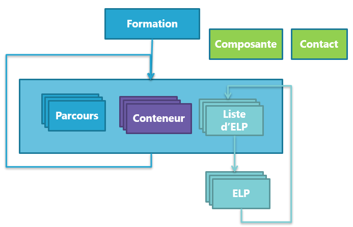 Il peut lui-même contenir une liste ou plusieurs listes d'ELPs pour aller plus loin dans la description du cours (stage, matières, projets tutorés, ...)