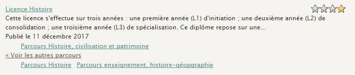 none : routes are not available at XML .all : the courses are all available at XML , you can display them under the course.matching_search_only : only courses matching the search criteria are available at XML . You can display them below the course.all_with_highlight : all routes are available in the input XML , but those with the "highlight " attribute are those that meet the search criteria, so you can customize the display between those that meet the criteria and others.You have 3 additional XSL templates to manage the display of routes, which you can use or override as you wish: