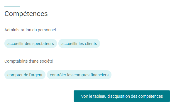 Clicking on the "View skills acquisition table" button opens the table below: