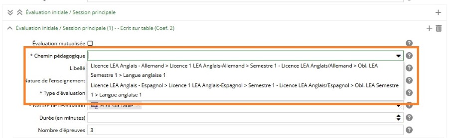 When an assessment is not mutualized, it is defined on a precise pedagogical path.