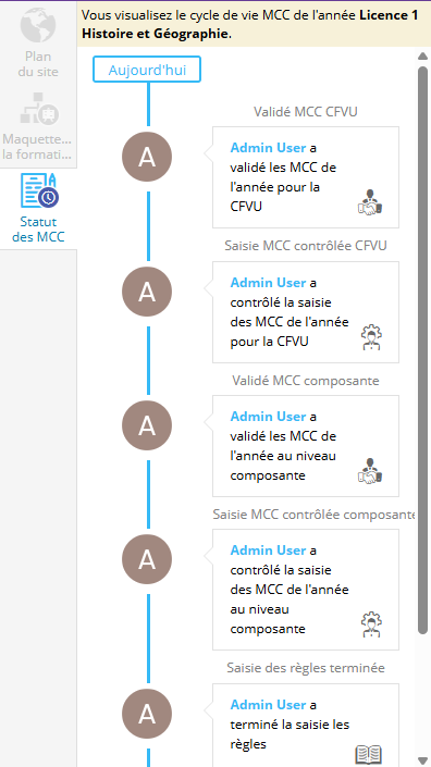 The MCC Status button lets you consult the history of MCC statuses over a training year.