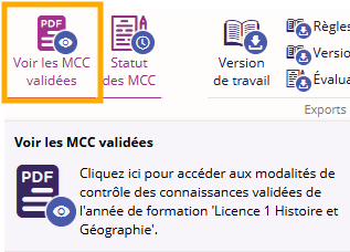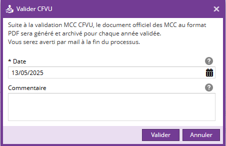 The View validated MCC button allows you to download the PDF generated when the status is validated. CFVU-controlled MCC input.