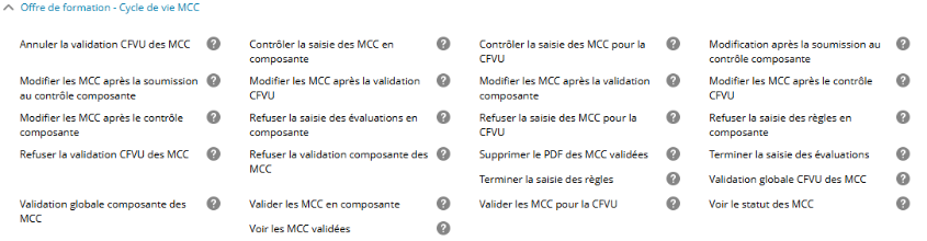 The list of rights associated with the MCC lifecycle is as follows (available in the Training offer - MCC lifecycle category)
