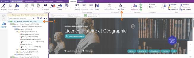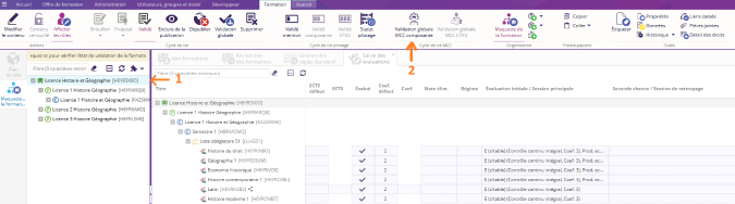 Click on the course (1) then on Global validation MCC CFVU (2)
