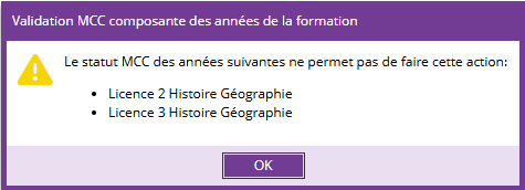 If one or more years do not allow global validation, an error message appears and the years concerned are not validated.