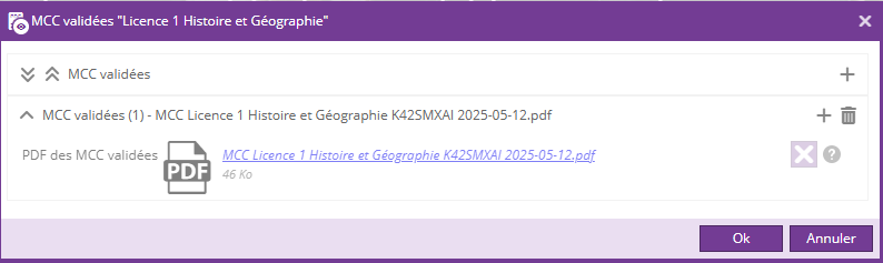 When this status is validated, the official MCC document in PDF format is automatically generated and archived. The validation date appears in the footer of the document.