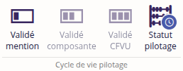 À partir de la version 4.9, le cycle de vie MCC ayant été mis en place, le cycle de vie de pilotage se compose de 3 niveaux de validation car le statut Validé CFVU MCC fait partie du cycle de vie MCC