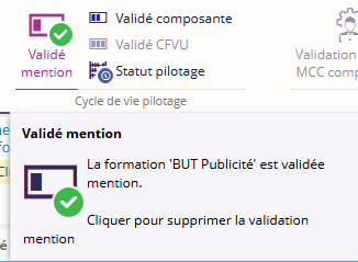 Une fois la formation validée au niveau de la validation mention, vous pouvez valider le cycle de vie suivant validation composante.