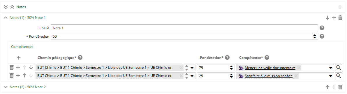 Chemin pédagogique de l'évaluation, sur lequel définir la pondération et la compétence.
