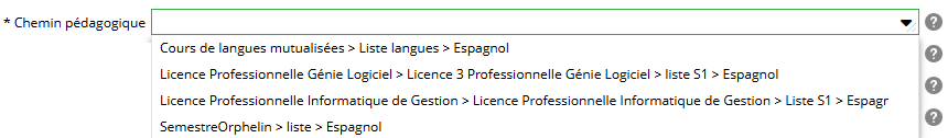 Ce champ est disponible uniquement si l'ELP est mutualisé et si la case "Évaluation mutualisée" a été décochée, l'évaluation est donc définie sur un chemin pédagogique. Pour plus de détails sur les évaluations par chemin pédagogique, veuillez consulter cette page. |