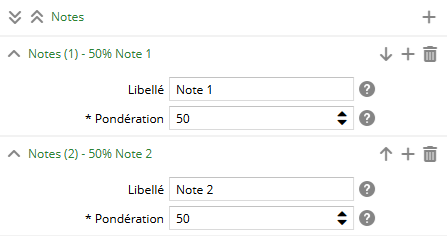 Une évaluation peut être constituée de plusieurs notes, définies comme suit :