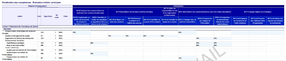 Au format Excel, le fichier généré est soit le tableau des MCC, soit le tableau des MCCC.