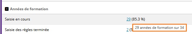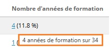 Une info bulle sur le nombre d'années affiche le nombre d'années de formation ainsi que le nombre total d'années