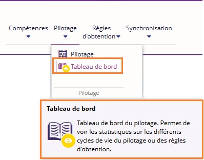 Le tableau de bord du pilotage est disponible à partir de la version 4.8