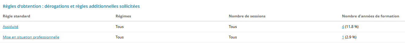 Cette colonne affiche, par thématique, le nombre d'années de formations sur lesquelles une dérogation est saisie.