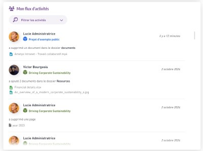 Le flux d'activités s'enrichit d'un filtre par projets.