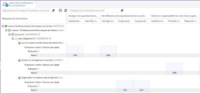 The evaluation entry table has been enhanced to take account of pedagogical paths: ECTS, Coefficient and MCC.