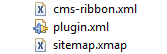 the file plugin.xml is mandatory. It contains the declaration of extension points, configuration parameters and site parameters required by plugin. the file sitemap.xmap contains all the cocoon pipelines required for the plugin the file cms-ribbon.xml defines ribbon buttons associated with plugin (optional)