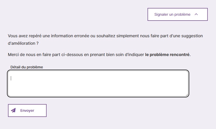 Un formulaire de signalement peut être affiché sur toutes les pages.