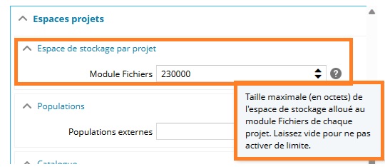 Le module Fichiers intègre désormais une limite de taille pour l’espace de stockage alloué.